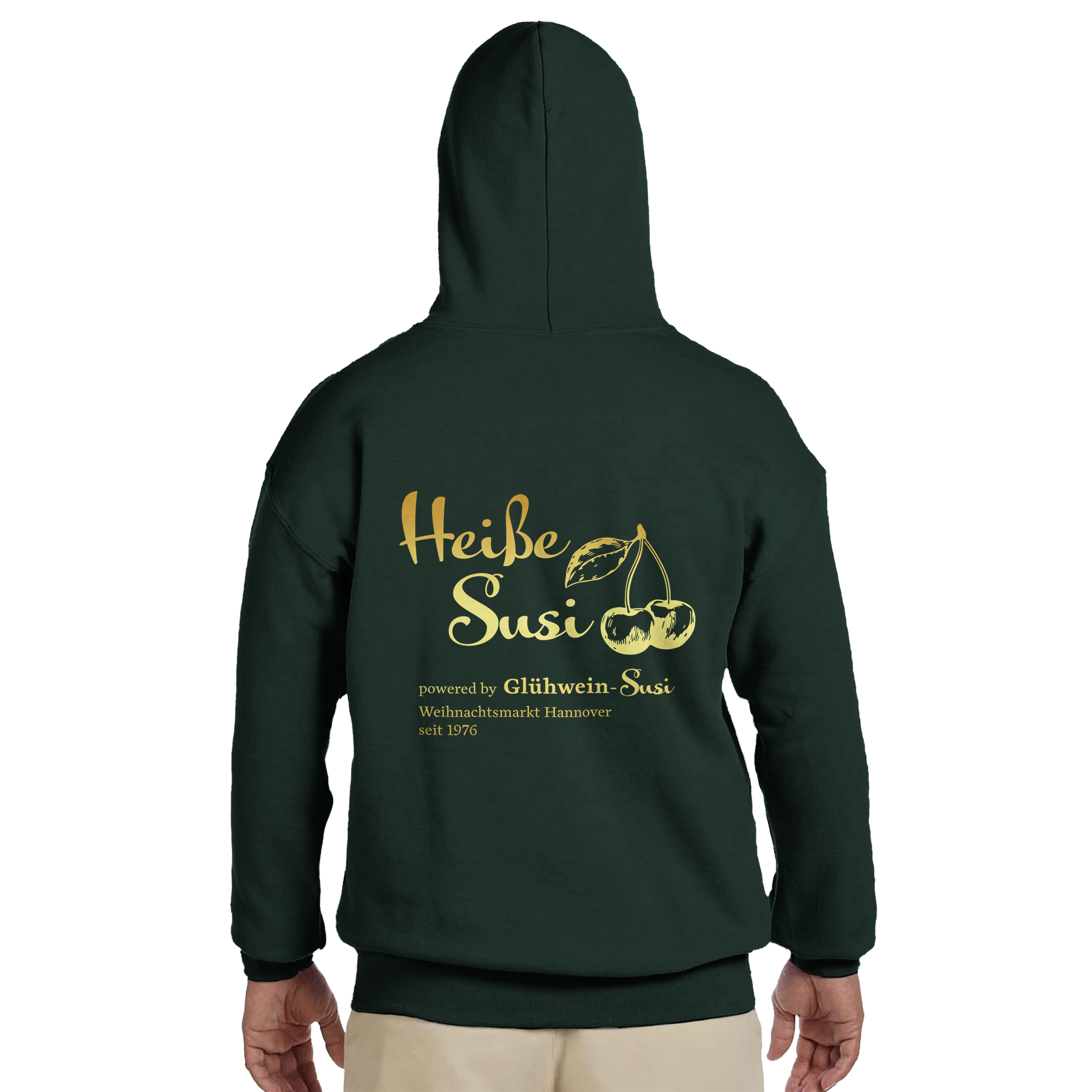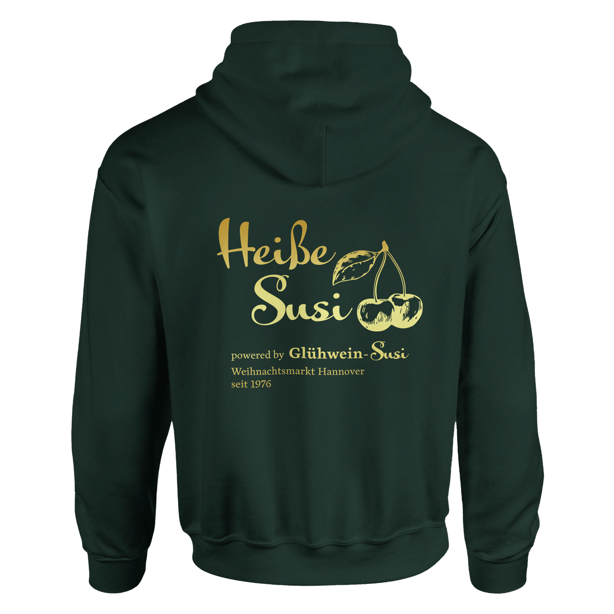 Hochwertiger Baumwoll Hoodie mit „Heiße Susi“ design.